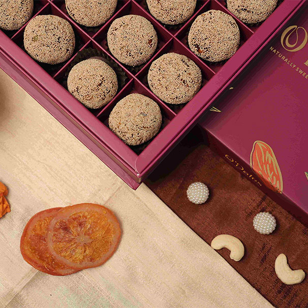 Savor the rich sweetness of dates harmoniously paired with the zesty hint of orange, enhanced by the wholesome crunch of seeds and nuts. Handcrafted with care and bursting with natural goodness, these irresistible ladoos are the perfect treat for any occasion. Elevate your snacking experience with our delicious fusion of flavors - try them today and delight in every bite!