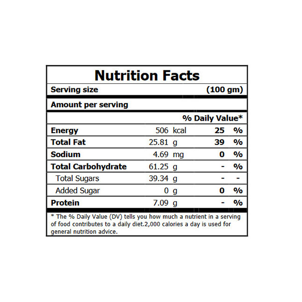 Premium black dates, pumpkin seeds, sunflower seeds, flex seeds, white sesame seeds, cashew nuts, almonds , poppy seeds, ghee, orange extract, orange peel, sugar, thickener - 440, acidity regulator - 330, preservative – 202, permitted Synthetic food co |